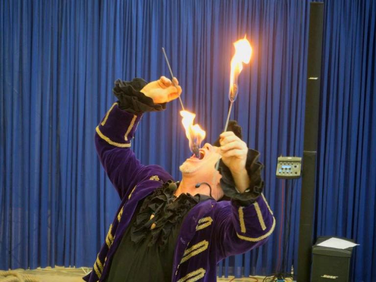 der auch Magier, Musikant, Feuerkünstler und Comedian ist,